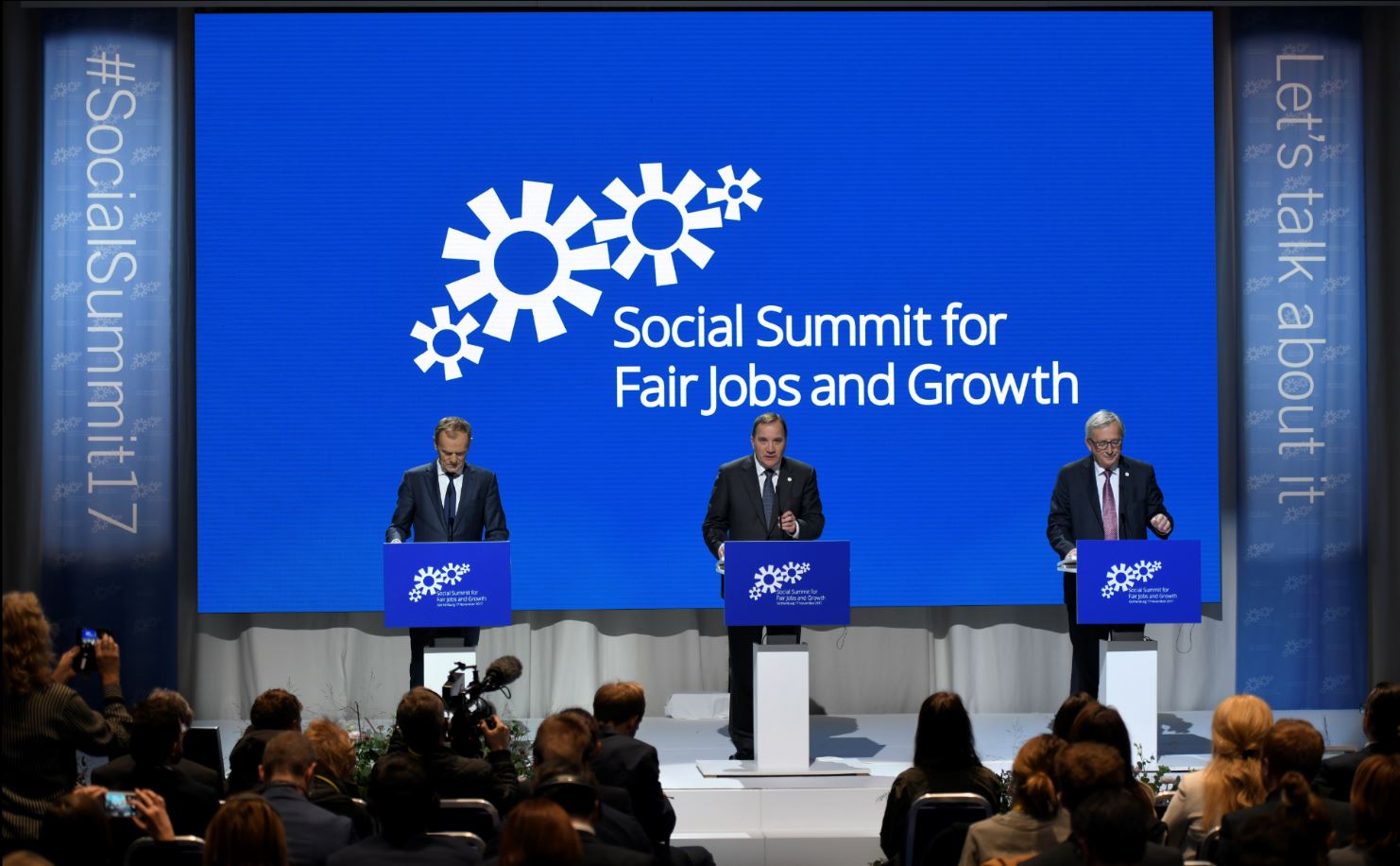 – Vi är här för att sätta folket först, i ett socialt Europa, sa statsminister Stefan Löfven när han öppnade toppmötet i Eriksberg, ett gammalt varv i Göteborg, som nu är en konferensanläggning.