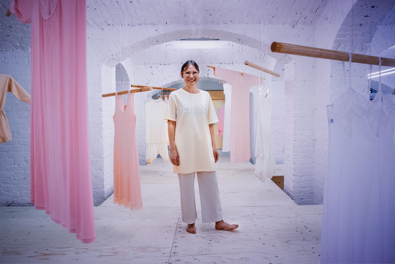 Noora Niinikoski påpekar att Nanso har gjort sig känt som företaget med mjuka underkläder. Kan man då använda dem som sommarklänning eller på stranden? Visst, det avgör var och en själv!