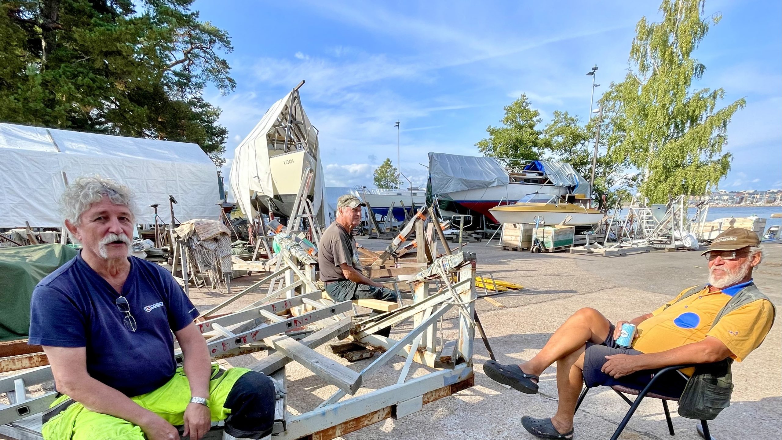 Det är också saker som Pekka Paatinen, Reidar Studnitzkij och Markku Vähäniemi för fram när de tar en paus i båtrengöringen. Inte för att de har bråttom, alla är pensionärer och tillbringar mycket tid vid sina båtar.